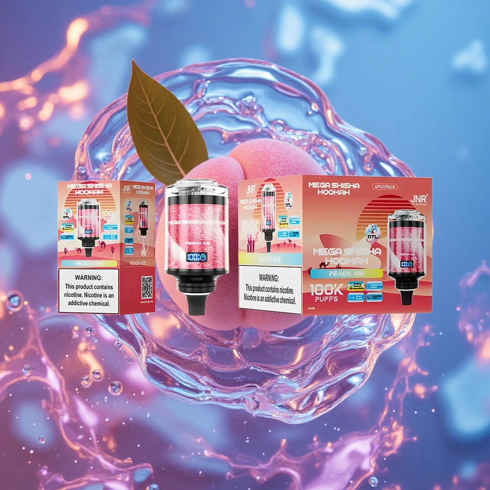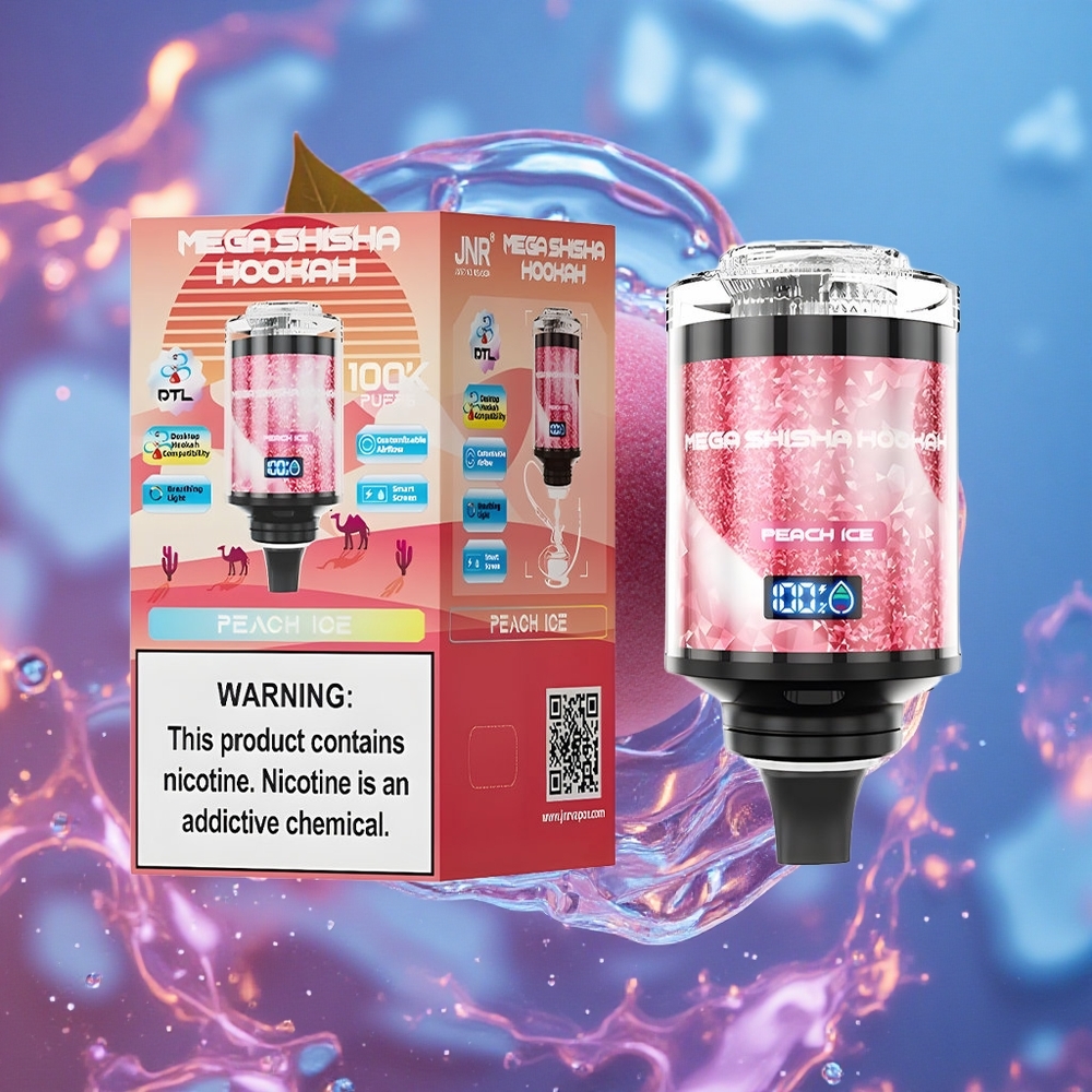 Broskvový led JNR Mega Shisha Hookah 100K Stolní kompatibilita 100000 Puffs